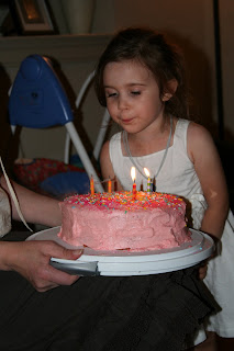 My sweet Lulu turned 4 years old this week. She was so excited. She walked into my bedroom and said- "Mom I woke up and now I'm 4." It was very matter of fact and completely adorable. She has been so excited about turning 4. The best part- she was anxious to get her shots. Now mind you this was before she actually got her shots, but she proceeded to tell everyone she met that she was 4 and because she was 4 she was going to get shots. She actually went into the doctor's office singing- "I'm getting a shot today. I'm getting a shot today." Of course, walking out she was signing a whole new tune. Which included.. "mom I can't do it, because my legs hurt." She was also walking really slowly and limping at the same time. Goofball. The thing she is most proud of.. she now gets to ride in a booster seat. She tells everyone that she is 4 so she gets to ride in a booster seat.